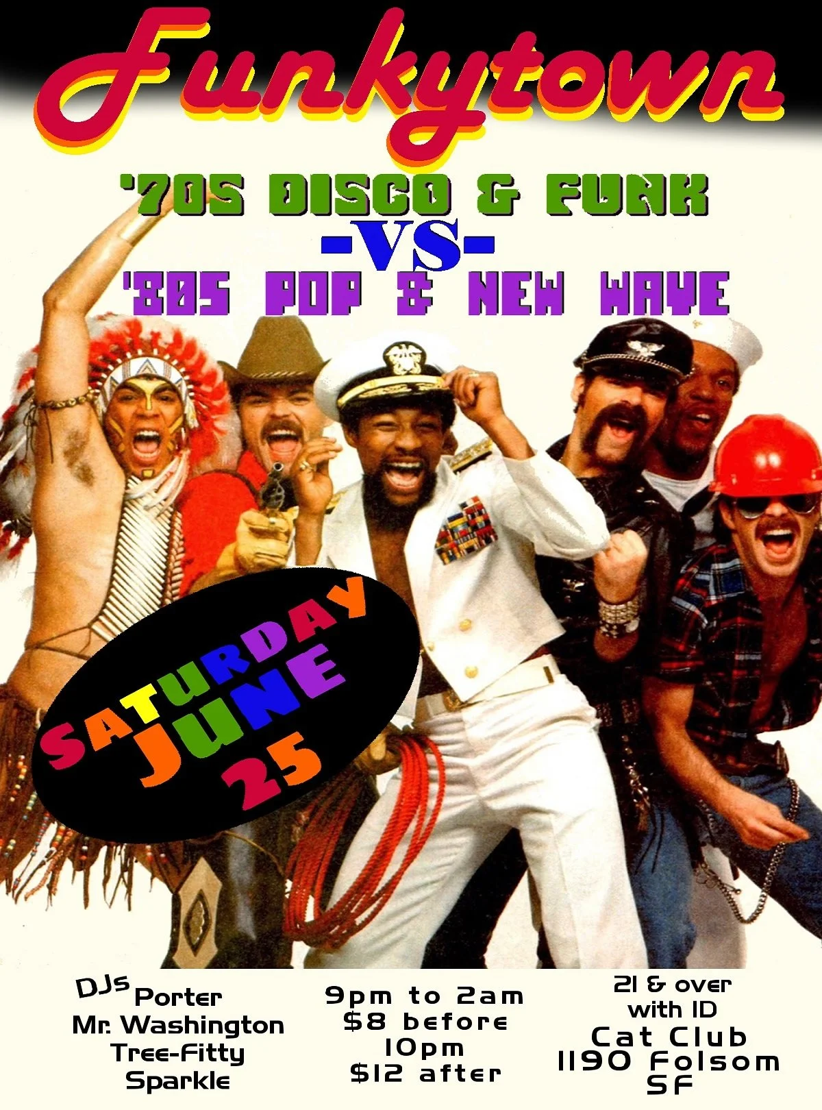 Get Funky every 4th Saturday at Cat Club! —— Come get your groove on with regular Funkytown DJ's MR. WASHINGTON, PORTER and TREE-FITTY, plus special guests as they play all the top disco and funk hits of the 70s in the backroom, and all the new wave and pop hits of the 80s in the front room. —— 9pm-2am $12 ($8 until 10pm) —— THE CAT CLUB 1190 Folsom, SF • 21+ (every 4th saturday)