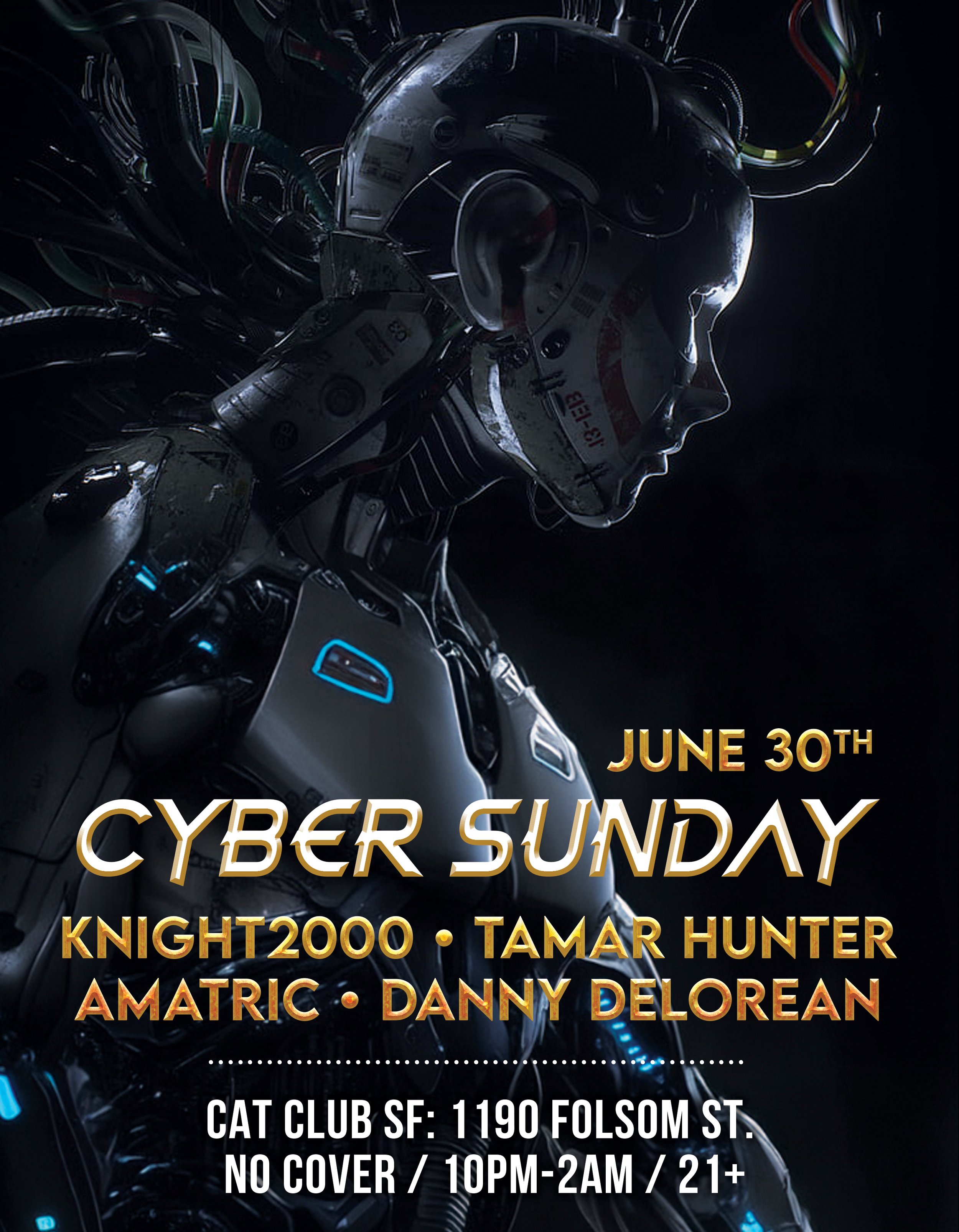 Cyber Sunday is a new weekly event at Cat Club in SF, showcasing the best in Cyberpunk related music and culture. Join us on April 28th for our second installation, as we bring you the best DJs spinning Cyberpunk, Midtempo, Synthwave, Bass, Electro, Breaks, Techno, Phonk, Industrial, EBM, and anything else we deem banging/dark/hard/awesome.