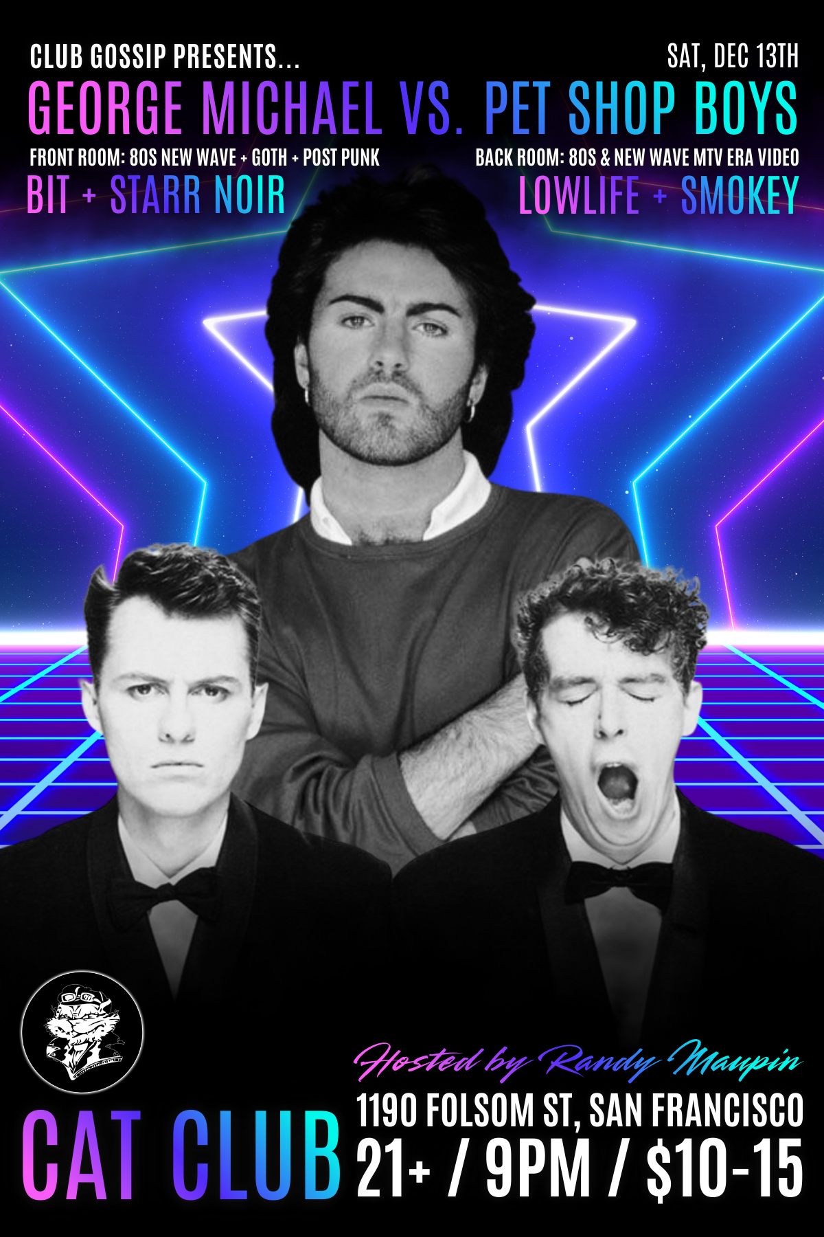 Relax into two rooms of dancing fun and excitement as we play lots of George Michael & Pet Shop Boys and everything else we love. All the Joy Division, Devo, Cyndi Lauper, Erasure, Eurythmics, Tears for Fears, Duran Duran, Siouxsie and the Banshees, New Order, Laura Branigan, The Cure, Depeche Mode, Kate Bush, The Smiths and everyone great from the new wave era.