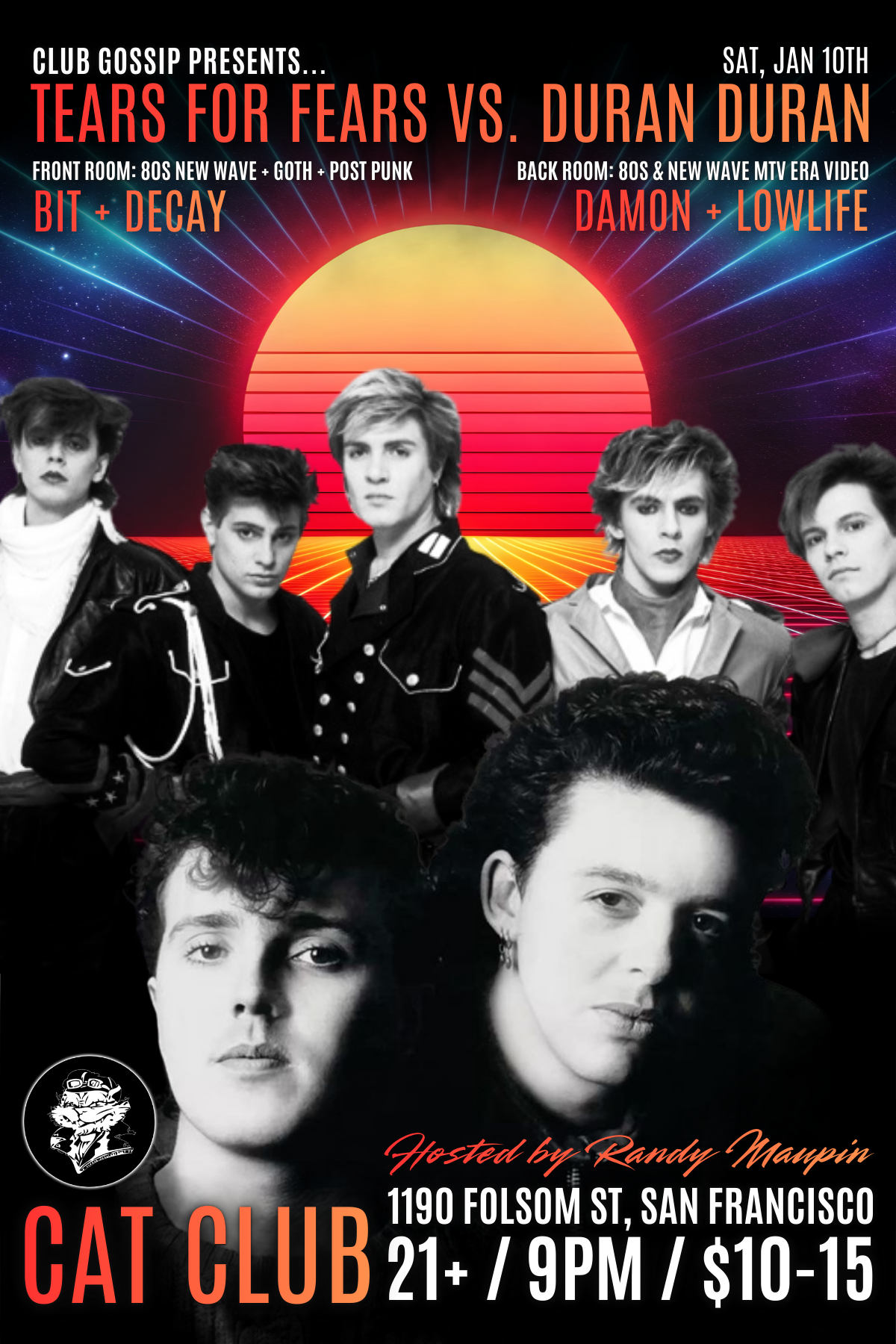 Relax into two rooms of dancing and fun as we play lots of Duran Duran & Tears for Fears and everything else we love. All the Joy Division, Devo, Cyndi Lauper, Erasure, Eurythmics, Siouxsie and the Banshees, New Order, Laura Branigan, The Cure, Depeche Mode, Kate Bush, The Smiths and everyone great from the new wave era.