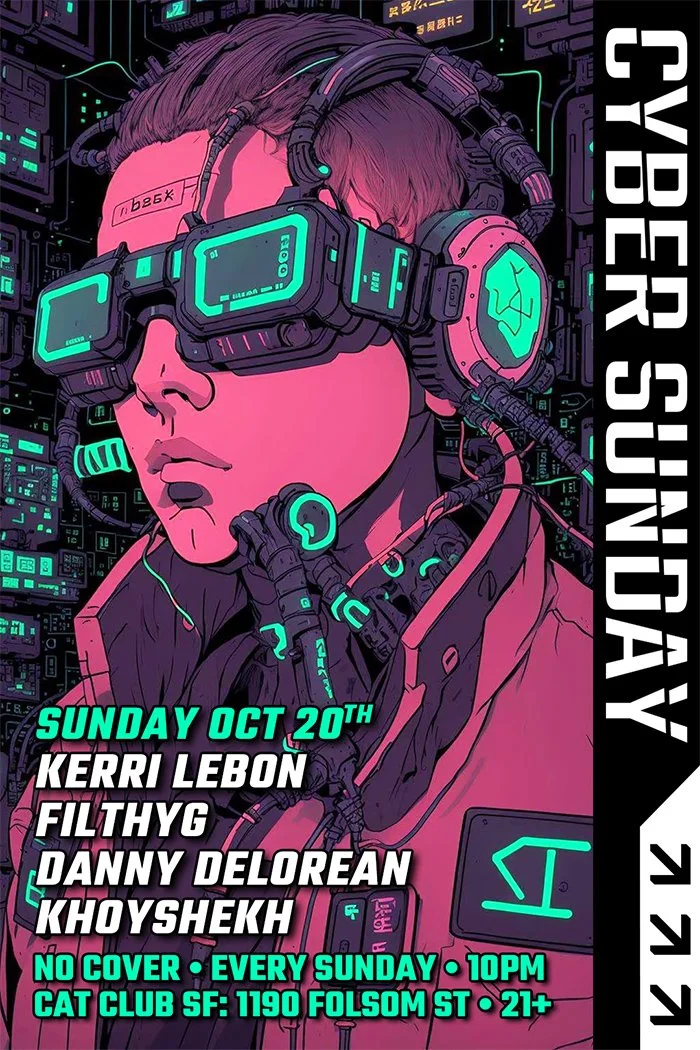Join us on Oct 20th 2024 for week 27 of Cyber Sunday, our free weekly at Cat Club in SF. WE'VE OFFICIALLY MADE IT TO THE 6 MONTH MARK!!!